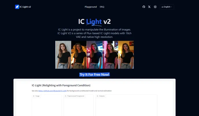 IC Light V2, short for "Imposing Consistent Light," is an advanced AI-driven platform designed to enhance image illumination. At its core, IC Light V2 utilizes a series of Flux-based models, incorporating a sophisticated 16-channel Variational Autoencoder (VAE) that supports native high-resolution image processing.
