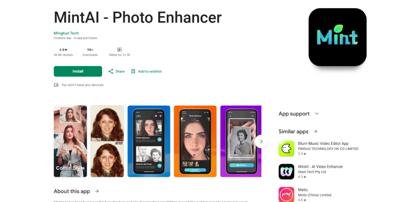 MintAI is a cutting-edge photo enhancement application developed by Mingkun Tech. Leveraging the power of artificial intelligence and cloud computing, MintAI offers Android users an effortless way to improve image quality. The app specializes in restoring and enhancing old, damaged, or low-resolution photos with remarkable ease.