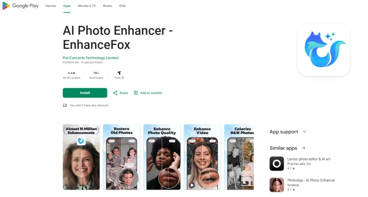 - Automatic Processing: The app's AI automatically enhances images, making it ideal for users without technical photo editing skills.