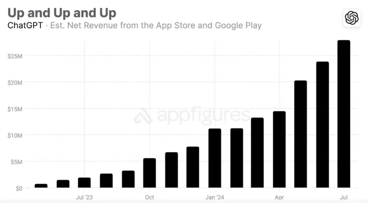 In a significant development for the artificial intelligence industry, OpenAI's ChatGPT mobile app has achieved its most successful month to date in terms of revenue. According to data from app intelligence firm Appfigures, the ChatGPT app generated an impressive $28 million in net revenue from the App Store and Google Play in July 2024. This milestone underscores the growing popularity and commercial viability of AI-powered conversational tools.