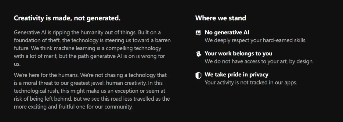 Preserving Human Creativity: The company believes that generative AI poses a threat to human creativity, which is at the core of Procreate's mission.