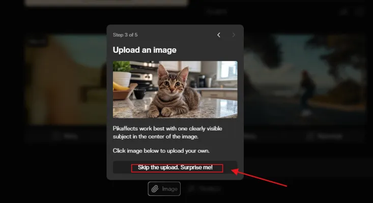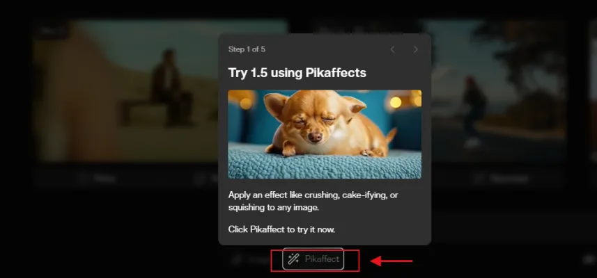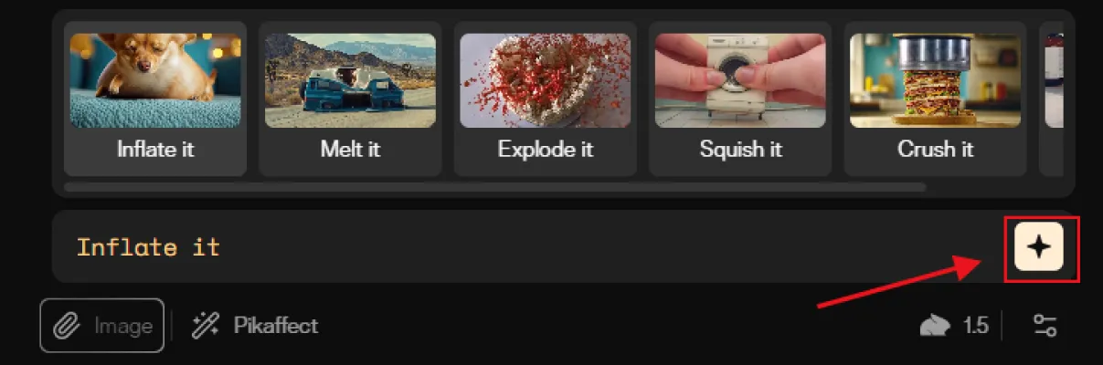 Step 3: Select "Pikaffect" to test Pika 1.5 and choose an effect from the Pikaffects suite, or opt for camera movements via Big Screen Shots.