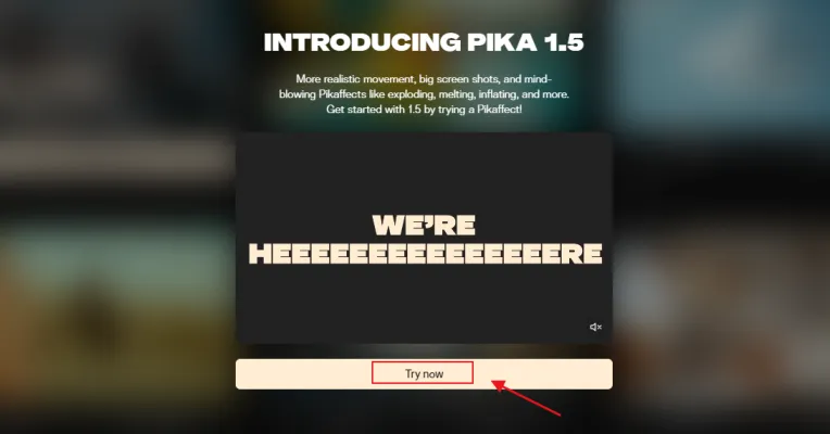 Step 2: On the Pika AI site, click "Try Now" to explore Pika 1.5.