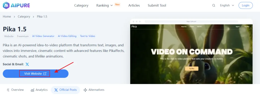 Step 1: In AIPURE, search for Pika to access the official Pika AI website.