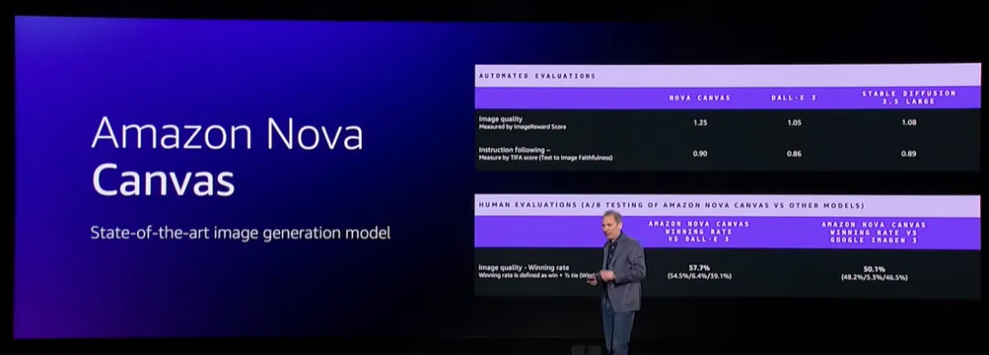 - Amazon Nova Canvas: An image generation tool that allows users to create high-quality images from textual descriptions with customizable features.