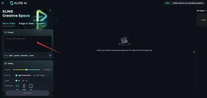 Now you can start creating your first video with Kling AI!
