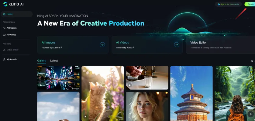 Step 1: Visit the international version of Kling AI at klingai.com.