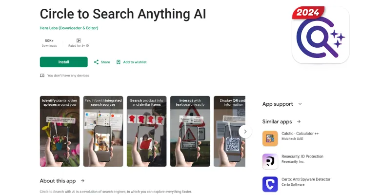 - Explanation: Visit the Google Play Store and search for "Circle to Search Anything AI." Click on the "Install" button to download the app to your Android device.