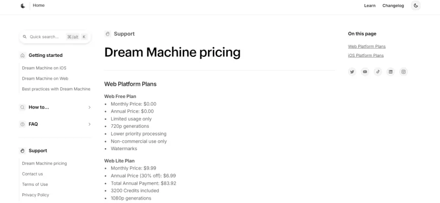 Dream Machine offers a tiered subscription model catering to various user needs: