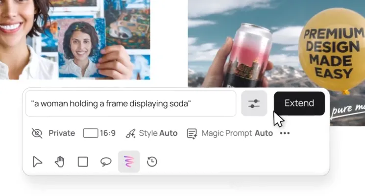 - Extend: This outpainting feature enables users to expand images beyond their original borders while maintaining stylistic consistency, allowing for greater flexibility in design.