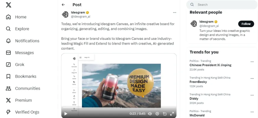 Ideogram has built the Infinite Canvas with an intuitive interface that promotes an iterative creative process. Users can zoom into images for high-resolution edits, combine multiple images into cohesive compositions, and utilize advanced text rendering capabilities. This flexibility caters to various creative needs, from graphic design to personal projects.