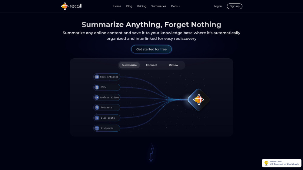 Recall is a cutting-edge platform designed to help users efficiently manage and retain information from various online sources. By leveraging advanced AI, Recall automatically summarizes content from podcasts, YouTube videos, news articles, and PDFs, extracting key points and organizing them into a personal knowledge base. This knowledge base is not just a static repository; it uses a knowledge graph to interlink related information, making it easier to rediscover and understand complex topics.