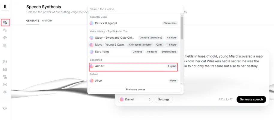 - Adjust settings such as gender, age, and accent strength if applicable.