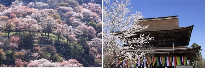 自然に囲まれた吉野山で桜を眺めながらウォーキングを楽しみましょう。坂道を多いですが、のぼると吉野山を一望できる展望台にも行くことができます。
