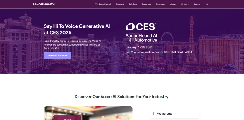 SoundHound AI is a leading voice artificial intelligence (AI) company that specializes in developing conversational AI solutions for businesses across various industries. Founded in 2005, SoundHound has evolved from a music recognition app to a comprehensive voice AI platform, offering advanced technologies such as automatic speech recognition (ASR), natural language understanding (NLU), and text-to-speech (TTS). Their platform, Houndify, enables developers to build custom voice assistants and access a wide range of content domains. SoundHound's solutions are designed to enhance customer experiences, improve operational efficiency, and drive business value. The company's technology is integrated into automotive, smart devices, hospitality, restaurants, and contact centers, among others. SoundHound is known for its partnerships with major brands like Hyundai, Snap Inc., and Pandora, and for its commitment to creating brand-owned user experiences that are free from Big Tech interference. With a focus on innovation and a global presence, SoundHound is shaping the future of voice-enabled interactions.