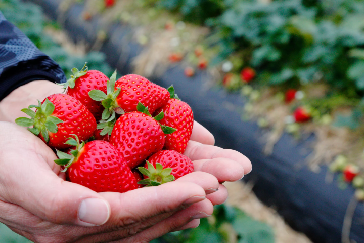 土耕栽培、有機肥料にこだわりを持ち、親子二世代ご家族で営まれている奈良県天理市のいちご農園です。
