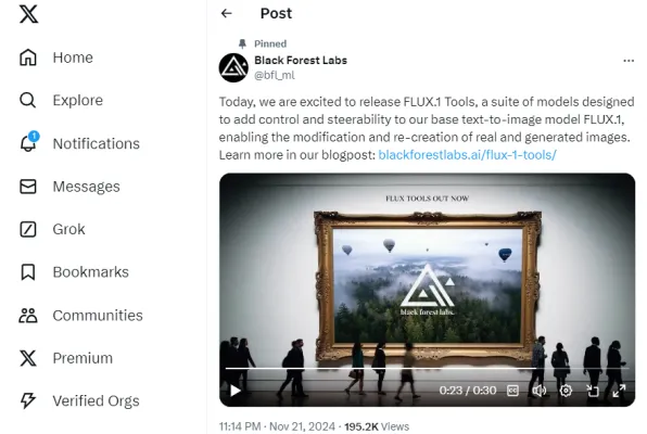 Yesterday (November 21, 2024), Black Forest Labs announced on Twitter the launch of FLUX.1 Tools. It is a comprehensive toolkit designed to enhance the capabilities of its base text-to-image model, FLUX.1. The suite provides users with unprecedented control and flexibility, enabling them to adjust both real and generated images.