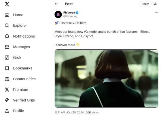 In an exciting update that promises to captivate digital creators and enthusiasts alike, PixVerse officially launched its V3 version on October 29, 2024. Announced through a vibrant Tweet on their official Twitter account, this new update is packed with a multitude of entertaining and innovative features designed to enhance the user's creative journey. You can view the announcement on their Twitter page(https://twitter.com/PixVerse_/status/1851102116892590528).