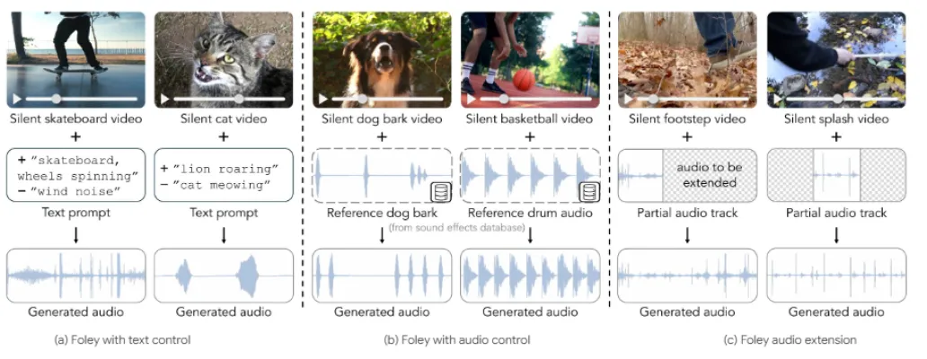 MultiFoley stands out for its ability to produce sound effects that are not only creative but also tightly synchronized with visual content. During demonstrations, the system showcased its versatility by transforming a cat's meow into a lion's roar and altering typewriter sounds to mimic piano notes, all while maintaining precise timing with video playback. This level of synchronization is achieved through advanced algorithms that analyze visual features at 8 frames per second and adjust them to match a 40 Hz audio sampling rate.