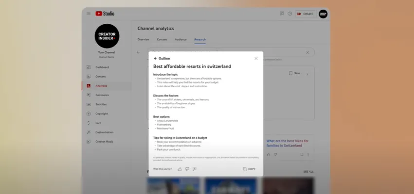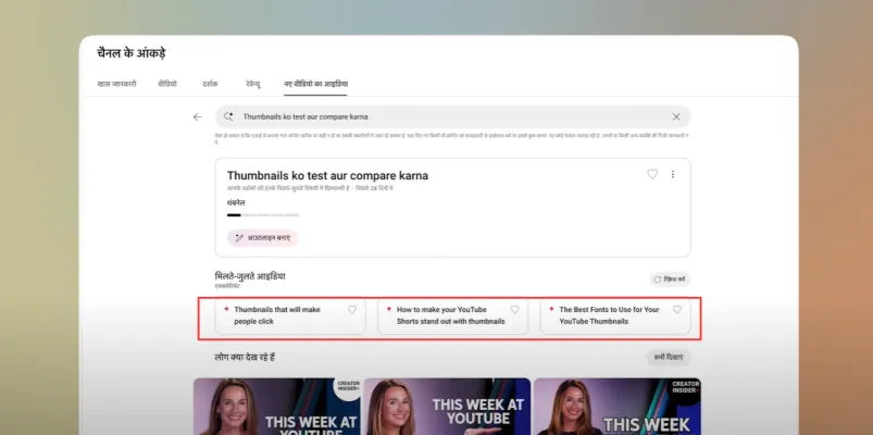 1.Idea Generation: Creators can input a video concept into the YouTube Studio search bar, triggering the AI to generate a range of related ideas and prompts.