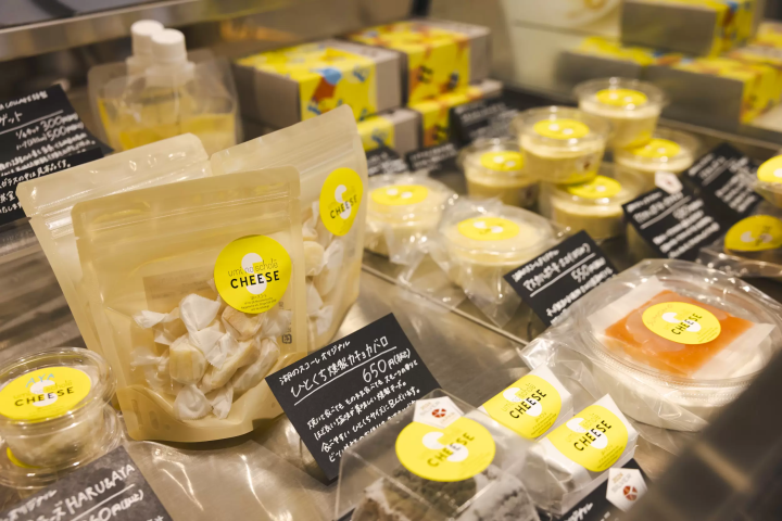 食事のあとは、ショップやギャラリーをのんびりと巡りながらお土産探しをするのはいかがですか。特におすすめは館内でつくられたチーズです。味わい深いだけでなく、ほかでは出会えない個性を持っています。たとえば、みそとチーズを掛け合わせた「みそフロマージュ」や、外側を竹炭で覆い、一見黒い見た目が印象的ですが、中はクリーミーでなめらかなチーズの触感が特徴の「竹炭フロマージュ」など、ユニークな商品が揃っています。