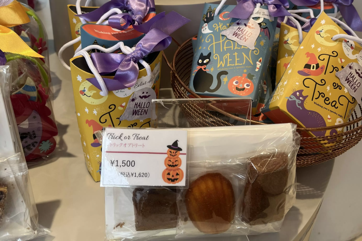 この季節になると、ÉclatdesJours(エクラデジュール)のショーケースには、ハロウィン限定パッケージの焼き菓子たちがずらりと並びます。おばけや黒猫のタグがついた小箱には、マドレーヌやフィナンシェなど秋らしい香りとやさしい甘さがぎゅっと詰まっています。