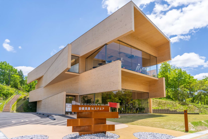 岡山県のほぼ中央、標高約400メートルの高原に位置する吉備中央町。ここにある「Nスクエア」は、コワーキングスペースとカフェを中心とした地域交流・創生施設です。ここでも「GREENableHIRUZEN」の「風の葉」と同様に、岡山県が日本一の生産量を誇るCLTパネルが使用されています。