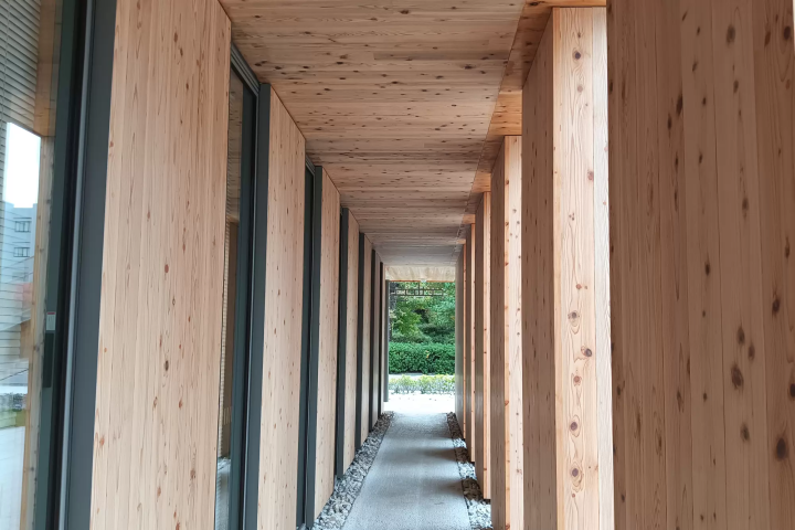 建物内部への立ち入りはできませんが、外観は見学可能です。木材建築特有の温かみが感じられる美しい建物です。