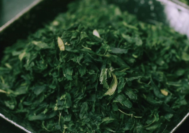 摘採の後、酸化を防ぐために葉はすぐ蒸されて乾燥されます。