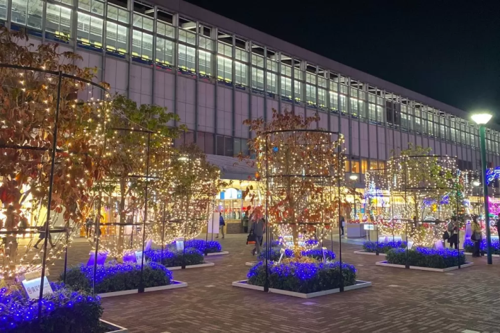 岡山市中心部では、「西川緑道公園」もイルミネーションで輝き、川沿いの散策やカフェ巡りとあわせて楽しめます。さらに「倉敷美観地区」では、白壁の町並みが柔らかな灯りに包まれ、歴史情緒と光が調和する幻想的な雰囲気を満喫できます。