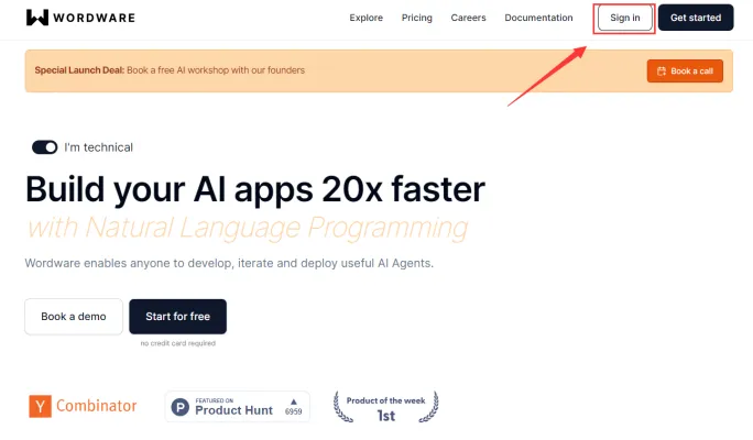 Open your browser and type in wordware.ai. You'll see a futuristic website interface. Click the "Sign In" button in the top right corner, as if pushing open a door to the AI world. Fill in your email and password, and don't forget to check the terms and conditionsβit's like signing your name in a magic book.
