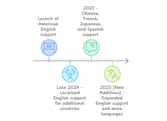 - Late 2024: Localized English support for Australia, Canada, New Zealand, South Africa, and the UK