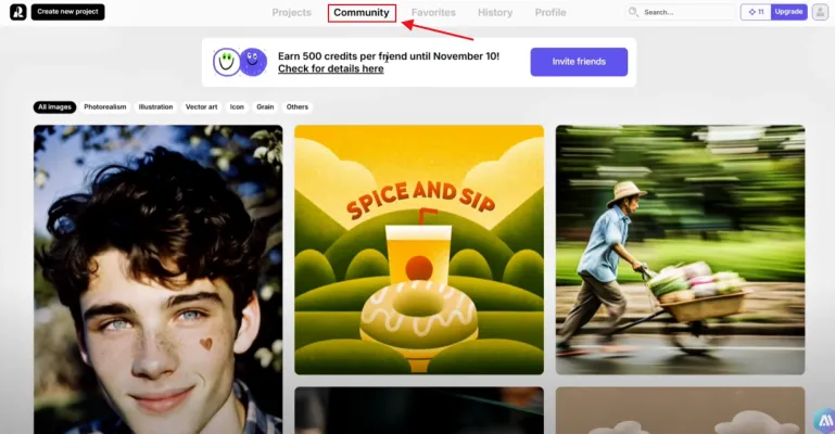 Recraft has a vibrant community where users share their creations. Browse through community-generated images to gather ideas and inspiration for your projects. If you like an image, simply collect it to view later.
