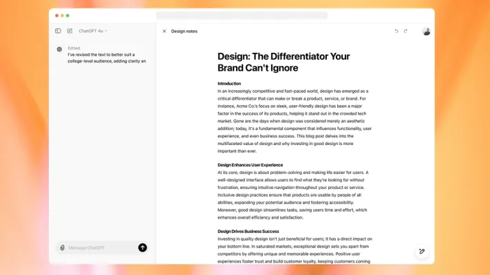 Coders will find Canvas particularly useful for collaborative programming. The feature's understanding of various programming languages and its ability to suggest improvements can significantly speed up development processes.