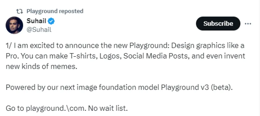 (Playground Official Twitter Post Link: https://twitter.com/Suhail/status/1829187297612574894 )